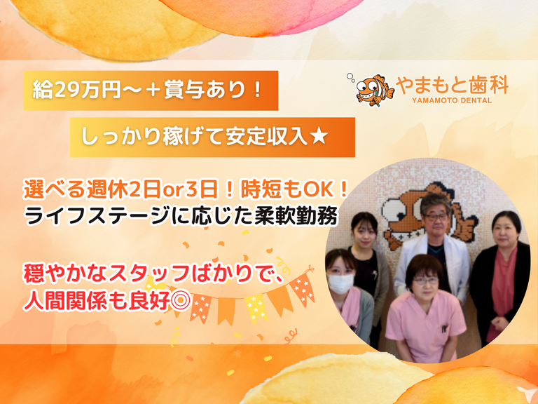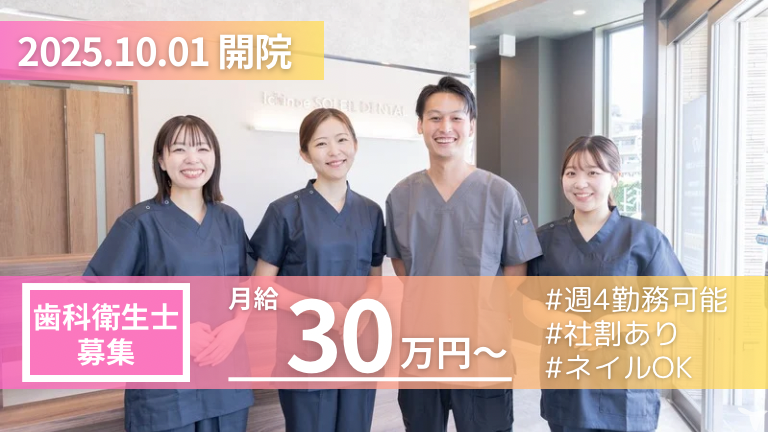 - 歯科医師 1名、歯科衛生士 非常勤3名、歯科助手 非常勤 2名